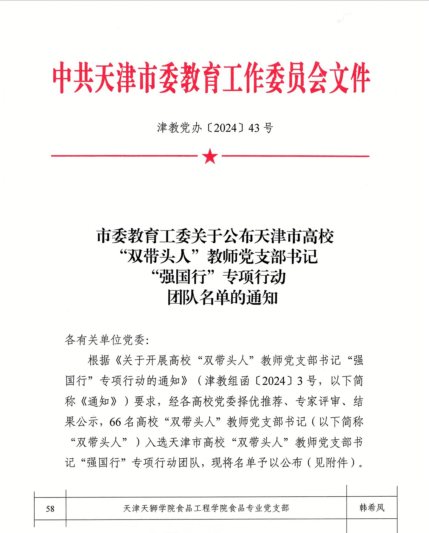 q日Q天z市委教育工委公布了《天z市高校“双带头人”教师党支部书记“强国行”专行动团队名单》,食品工程学院食品专业党支部入选天z市高校“双带头人”教师党支部书记“强国行”专行动团队?/span>