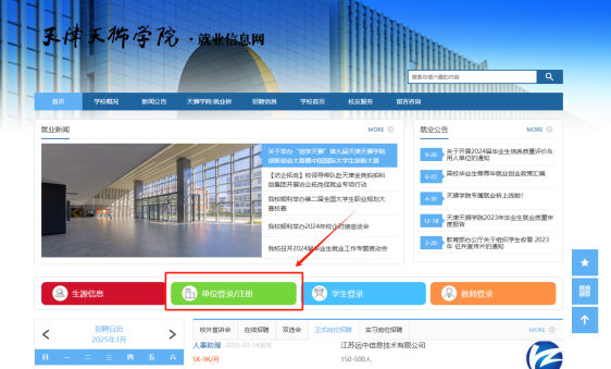 d天|天狮学院׃信息|(https://tianshi.bysjy.com.cn/Q。点击页面中间部分“单位登?注册”,输入账号密码后登录,若无账号可点几Z注册”按钮进行注册,账号认证通过后登录。如图所C,q入后选择菜单栏中“校园招聘”板块,选择“在U招聘”项目,q入后点d上角“新增”,卛_q行下一步操作?/span>