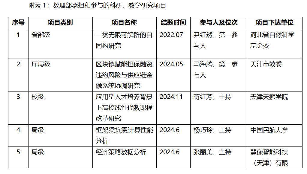 数理教学部的教师们秉扎쀜教研促教学”的理念Q注重教学教法的研究Q注重学术水q的提高和教育理论的研究Q徏成校U精品课2门。多q来教师们参与多Ҏ(gu)改与调研NQ其中局U项?,天|市委教育工委调研N2V校U科研教?8,在省U以上学术刊物发表论?0余篇?/span>